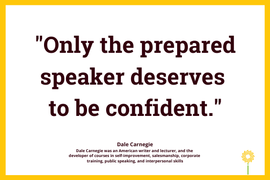 Being 100% prepared before you deliver your speech or presentation is vital to your public speaking confidence.